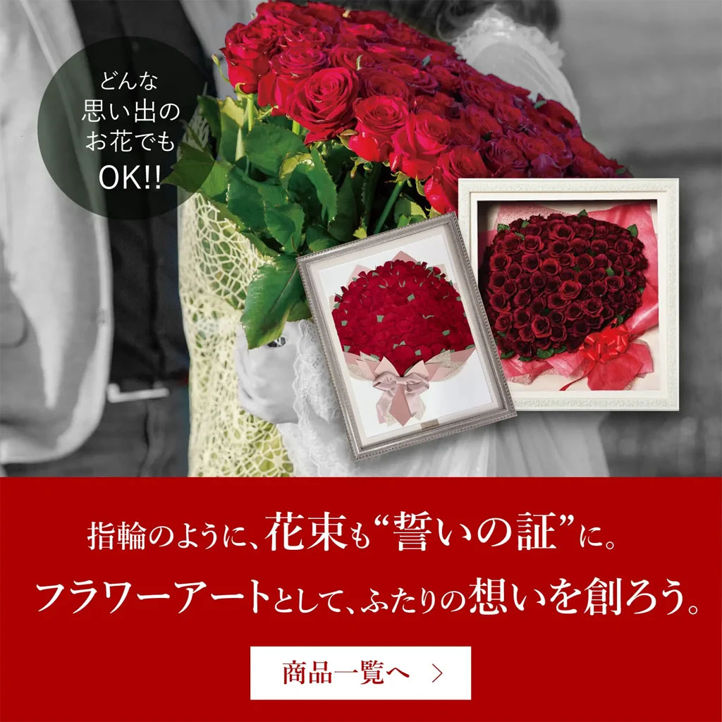 ・プロポーズで贈られた花束を、形としてずっと残したいカップル