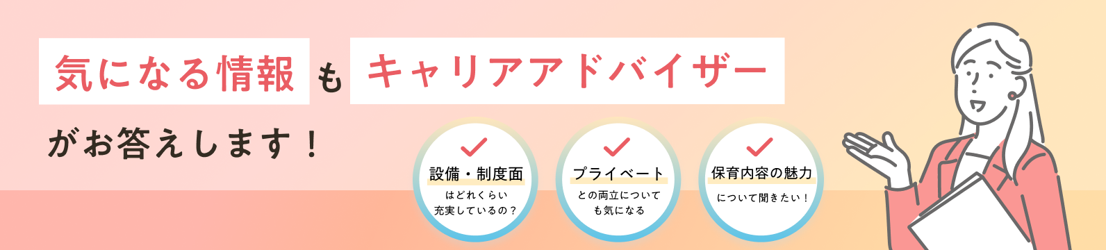 保育士バンクには保育業界に特化したアドバイザーが在籍しており、求人の案内だけでなく、職場選びの基準や転職活動の進め方なども丁寧に相談できます。園ごとの雰囲気や実際の働き方を把握しているため、表面的な情報では分からない細かな点まで確認しながら転職先を選べます。